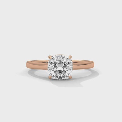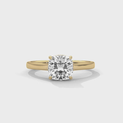 Embrace timeless romance with this exquisite 14KT engagement ring. It features a brilliant 1.00 Carat Cushion Cut Lab Diamond set in a sleek, classic solitaire style. Available in White, Yellow, or Rose Gold.