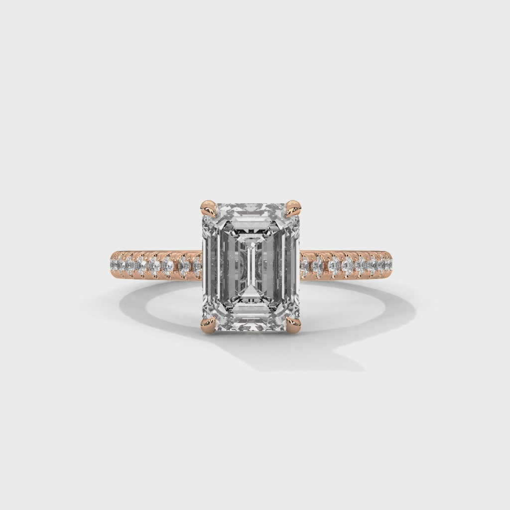 Elevate your style with this sophisticated14KT Emerald Cut Lab Diamond Ring featuring a 3ct Emerald Cut center stone, framed by 0.40 ct of sparkling accent diamonds, totaling 3.40 TDW. Available in your choice of Yellow, White, or Rose Gold.